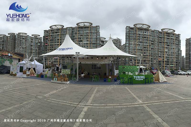 越宏膜結(jié)構(gòu)使用壽命長,并可助有自身維護措施,利用創(chuàng)新的膜結(jié)構(gòu),能促進(jìn)商家在戶外促銷活動中更有價值。