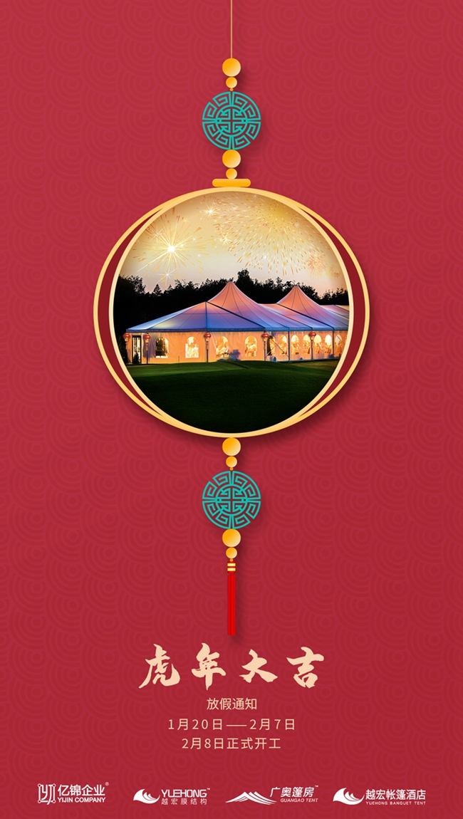 感謝所有的客戶與億錦家人們在這一年的陪伴與支持。在2022年新春來臨之際,億錦企業(yè)(旗下越宏膜結(jié)構(gòu))提前祝大家新春快樂,虎年大吉,虎虎生威!