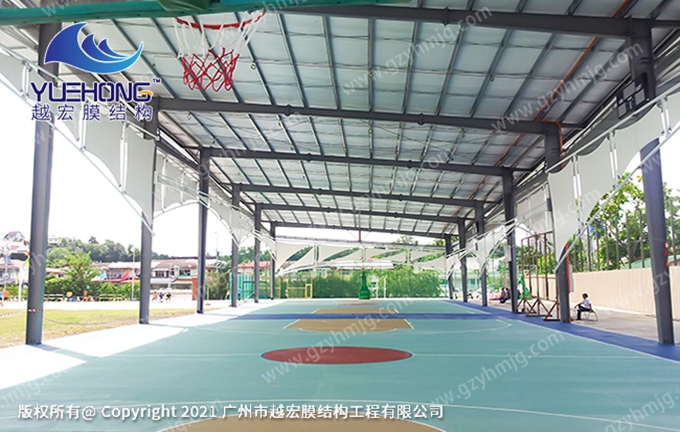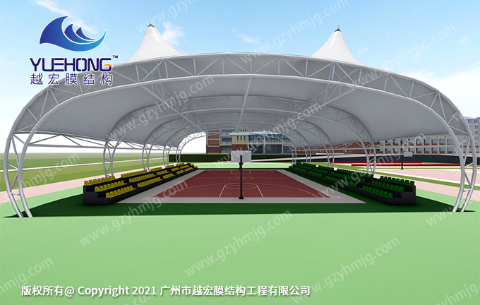 籃球場膜結(jié)構(gòu)無墻壁,覆蓋面積大,空間感好,視野開闊,符合現(xiàn)代人對舒適、開放、自由的居住要求。